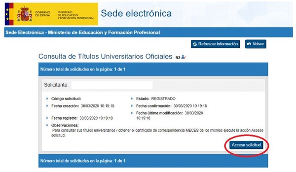Accedir a la seu electrònica del “Ministerio de Educación”, concretament a la pestanya “Consulta de Títulos Universitarios Oficiales” utilitzant el següent enllaç: