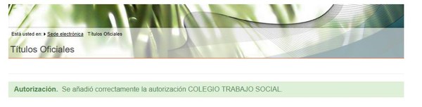 Després d’això, la plataforma ens portarà de nou a la pantalla inicial indicant que s’ha afegit correctament la nostra “Autorización”.